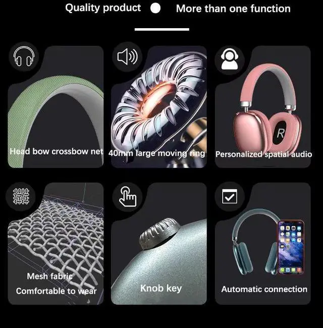 [Advanced Bluetooth 5.3+EDR Technology] Stay seamlesslyconnected with a strong transmission range of over 10meters, offering uninterrupted playback for any Bluetooth-enabled device. [Hybrid Active Noise Cancelling] With advanced noisereduction, these headphones intelligently identify andfilter out background sounds, so you can focus on clear,uninterrupted audio, whether on calls or enjoying music. [Acoustic Engineering for HD Audio] Experience rich,detailed sound through a 40mm driver equipped withAAC high-definition decoding, designed to deliver aconcert-like audio experience with clear, lifelike vocals anddeep bass [Enhanced Microphone System] Built for HD calling, theupgraded microphone captures ambient soundssensitively, actively reduces background noise, andenhances clarity for seamless conversations. [Ultimate Comfort with Memory Foam Ear Cushions] Crafted with soft, breathable protein leather and 360°skin-friendly memory foam, the ParaEar ensures comfort forextended listening, fitting snugly without causing pain orpressure. [Extended Battery Life & Quick Charging] Enjoy up to 120hours of standby time, with a 2-hour fast charge via theconvenient Type-C interface, so you're always ready foryour next audio adventure.