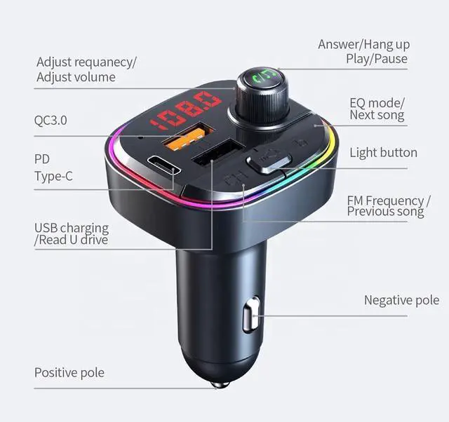 3.Handsfree answerSimple operation,one-clickhooking up the phone,rotating buttons to adjustthe volume,frequency,and handsfree answer