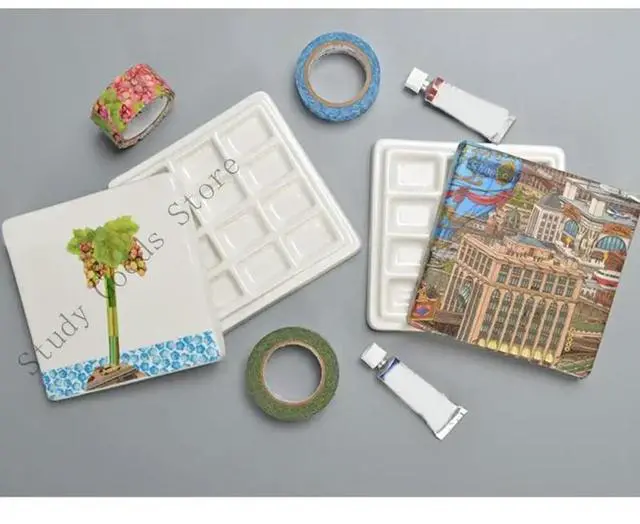 12 Grids Watercolor Palette Ceramic Mixing Tray Ceramic Paint Palette for Acrylic Gouache Watercolor Painting
