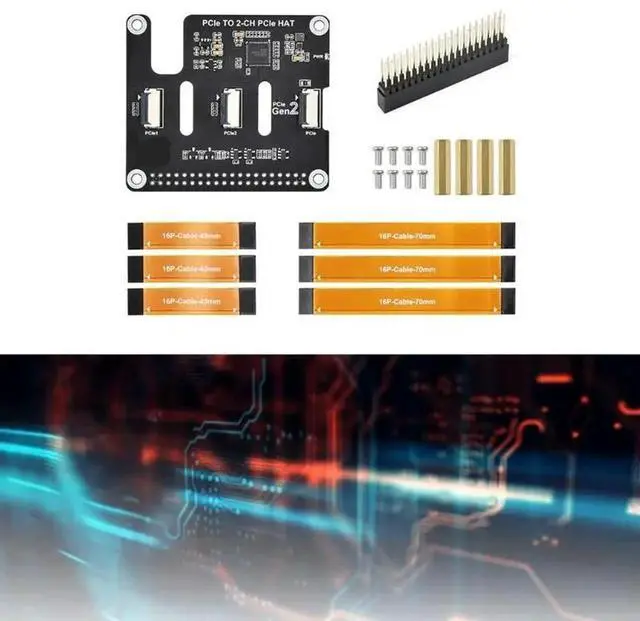2 Port PCIe to 2CH PCIe FFC HAT PCle Expansion Module 16Pin Connection for RPi 5 for Electronics Enthusiasts