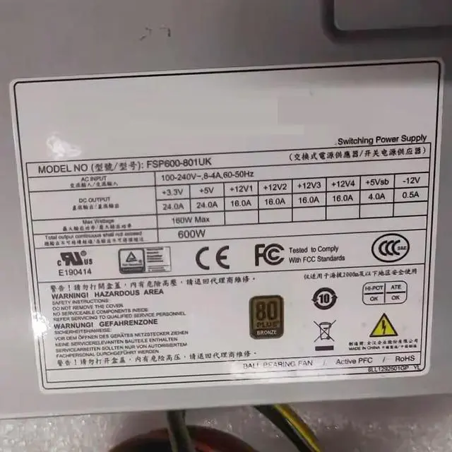 For FSP Grout 600W 1UServer Power Supply 100240V 600W FSP600-801UK