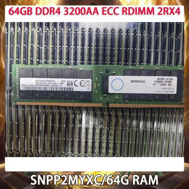 SNPP2MYXC/64G 64GB DDR4 3200AA ECC RDIMM 2RX4 RAM For P2MYX 0P2MYX Server Memory