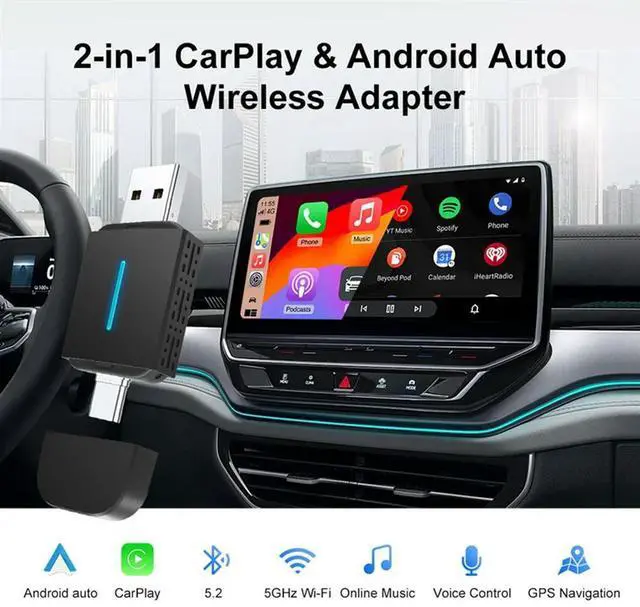 2 In 1 Carplay Wireless Adapter Wired To Wireless Carplay Box Car Interconnection Box Car Wireless Adapter Plug And Play
