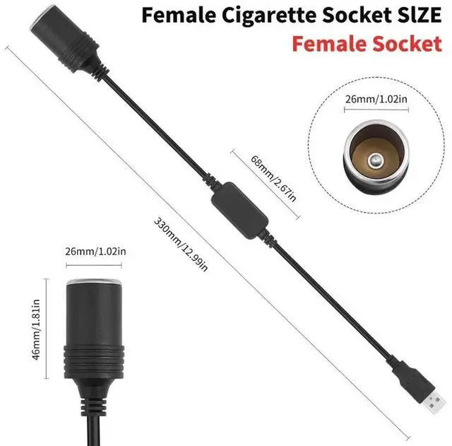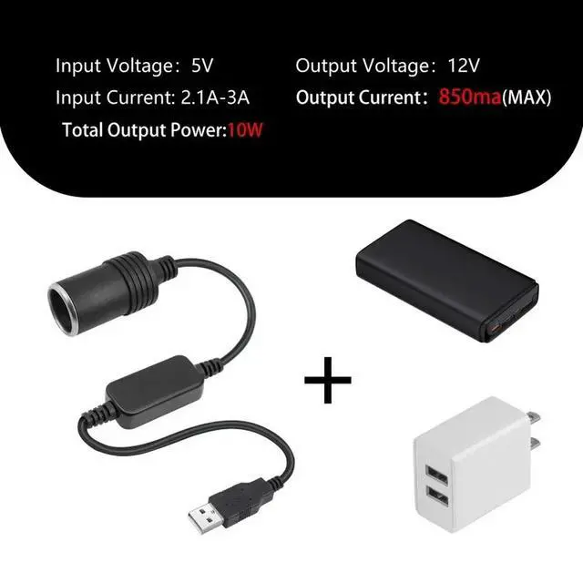 USB 5V to 12V Adapter USB Male to 12V Car Cigarette Lighter Socket Female Power Supply Converter Cable Output 12V 10W