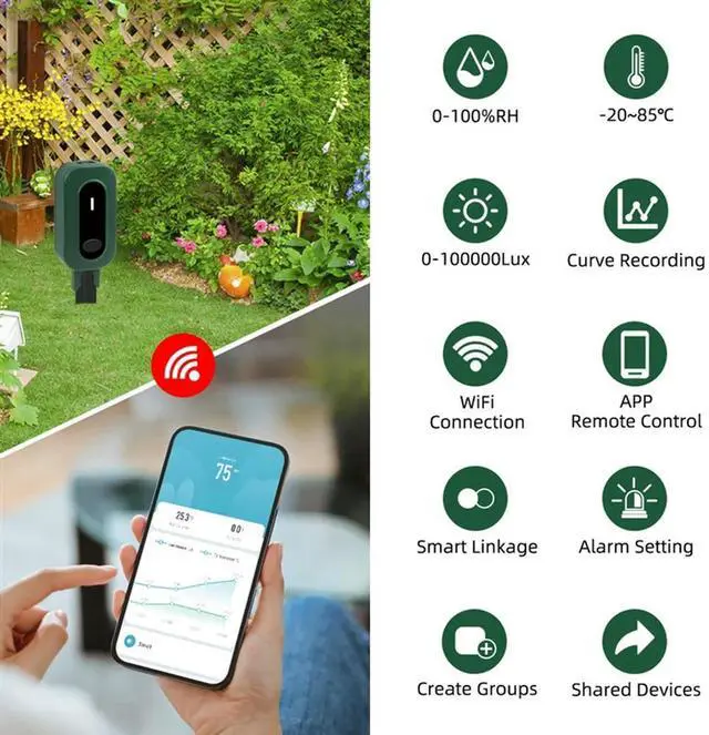 Tuya Zigbee Wireless Soil Moisture Meter Intelligent Temperature Humidity Sunlight Tester Soli Analyzer Gardening Tool
