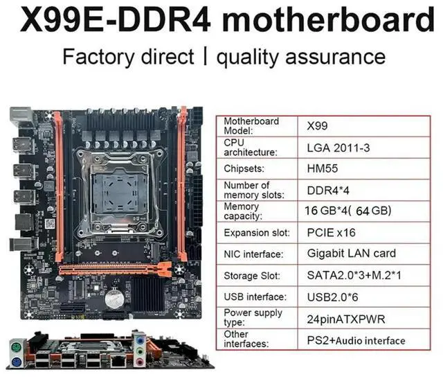 X99E Motherboard+E5 2673 V3 CPU Dual Channel Supports 4XDDR4 RECC RAM PCIE X16 NVMe Gigabit LAN Card Desktop Motherboard