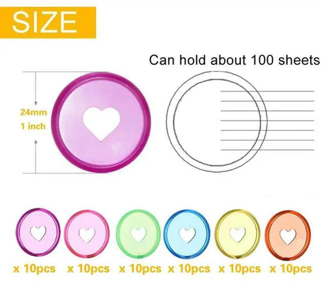 120 Pcs 24Mm Plastic Book Binding Discs, Discbound Expansion Discs, Heart Binder Rings Mushroom Hole For DIY Notebooks
