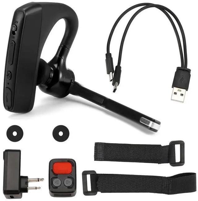 Walkie Talkie Bluetooth Earphone with M Plug Adapter Wireless PTT Remote Control for Restaurant Hotel