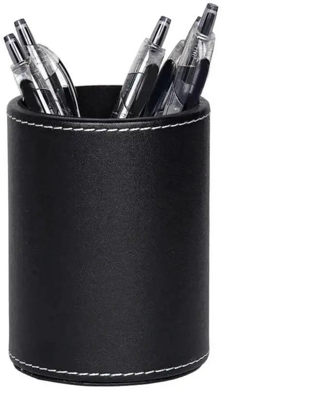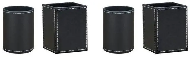 4Pack PU Leather Pens Pencils Holder Cup Desktop Stationery Organizer Case Office Accessories Container Box Black