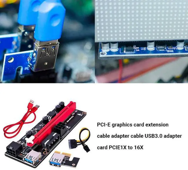 USB 3.0 PCIE Extension Cable Riser Express 16X Extender Riser Adapter Card 6 Pin Power Cable for Window System/XP