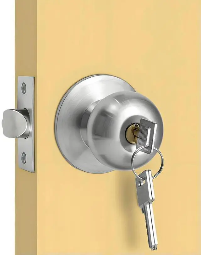 Keyed Entry Door Knob with Lock Round Door Knobs Stainless Steel Interior and Exterior Door Lock for Bedroom Bathroom