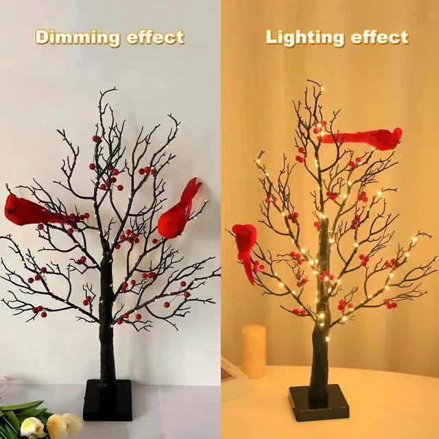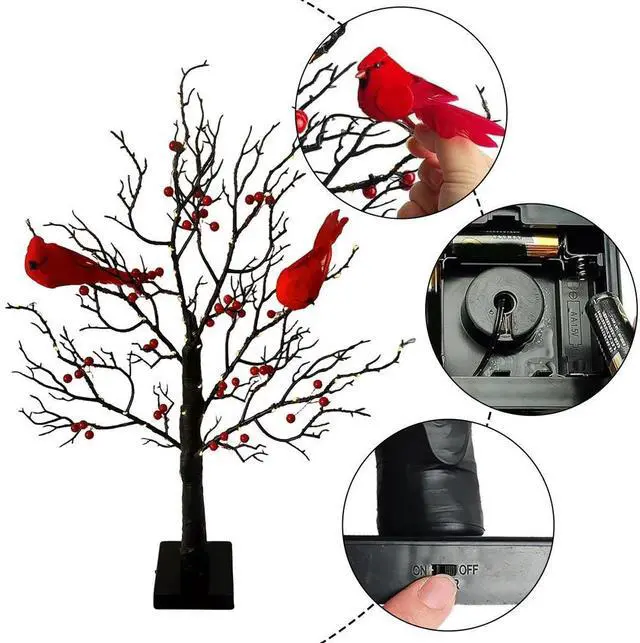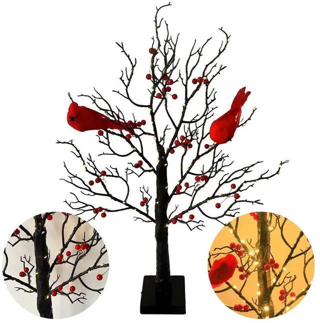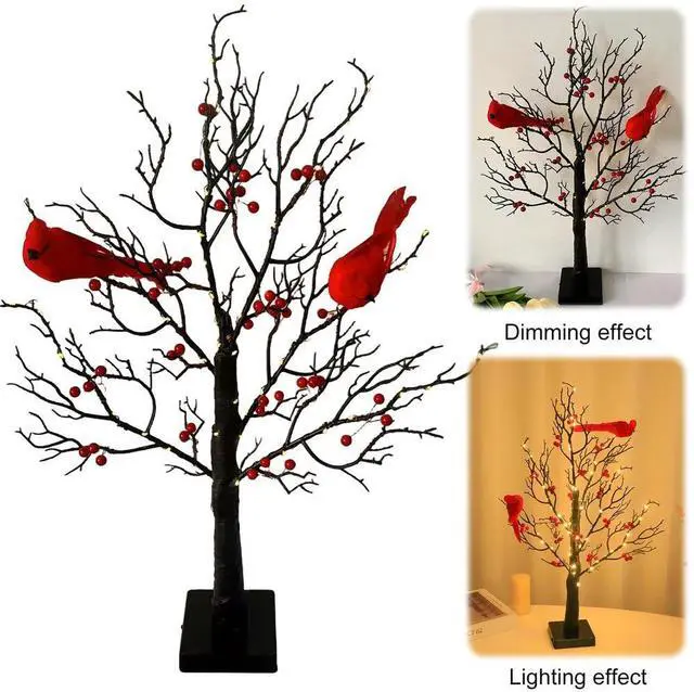Christmas Cardinal Tree with Lights Light Up Holiday Atmosphere Decor Easy Assembly for Yard Pathway Garden Xmas Party Decoratio