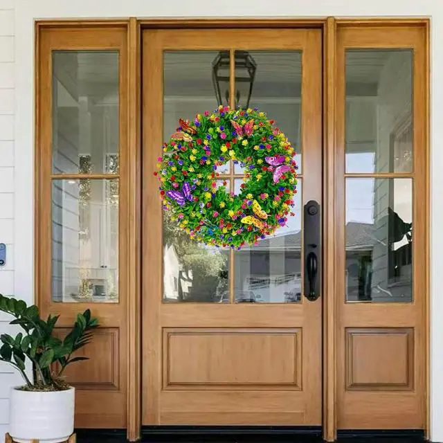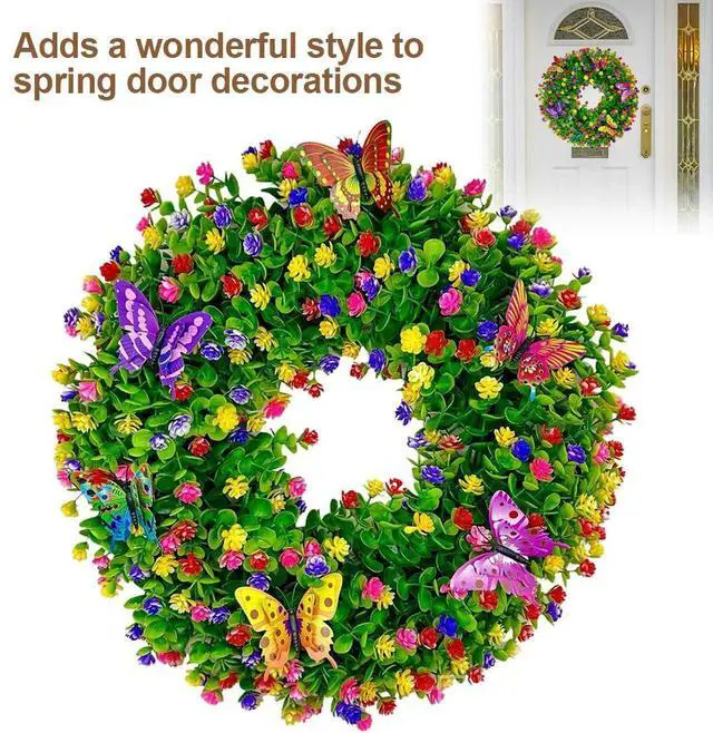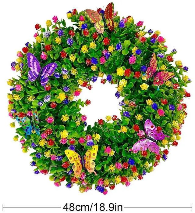 Artificial Eucalyptus Wreath Butterfly Flower Wreath Plastic Floral Wreath for Wall Window Farmhouse Party Holiday Home Decor
