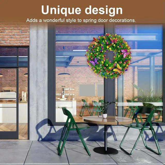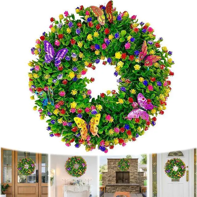 Artificial Eucalyptus Wreath Sping Door Wreath Butterfly Flower Wreath for Wall Window Farmhouse Party Holiday Home Decor