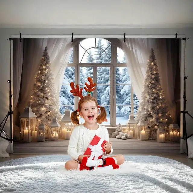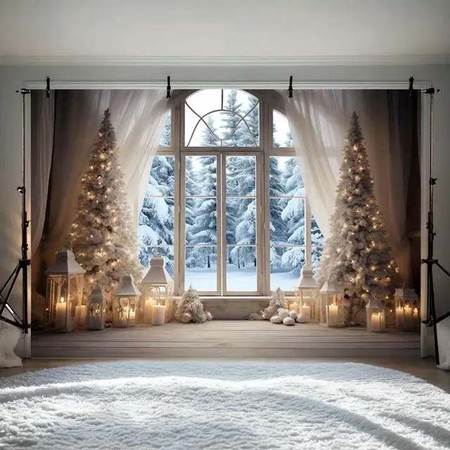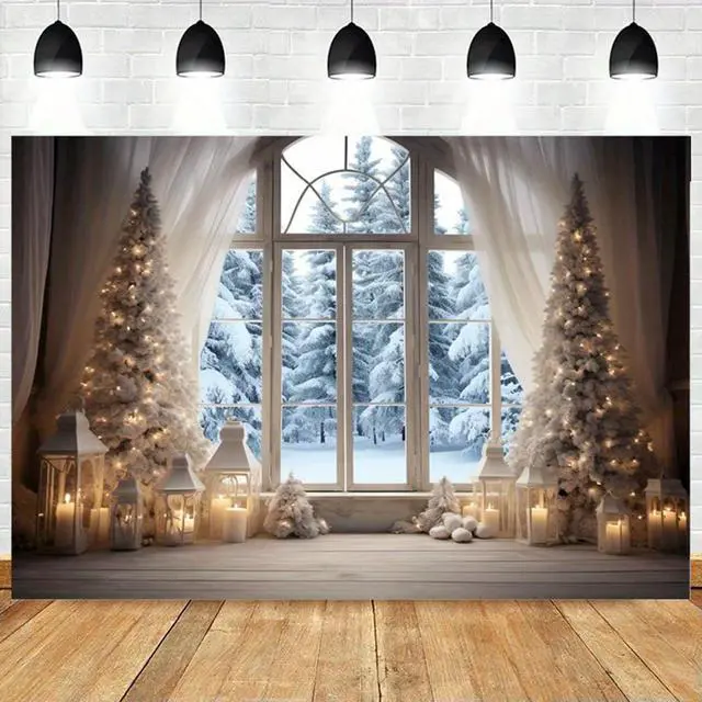 Winter Christmas Rustic Photography Backdrop 10x8FT Winter Snow Scene Xmas Party Decor Background Christmas Tapestry