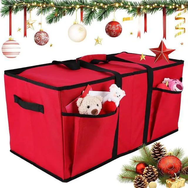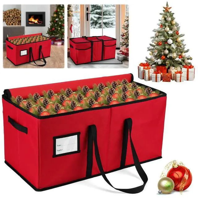 Red Oxford Christmas Decor Box With 128 Compartment Christmas Container Xmas Decorations Organizer