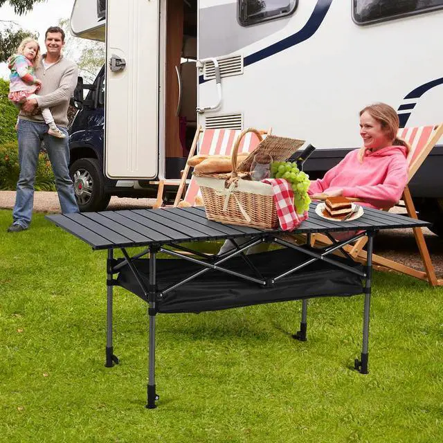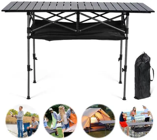 Outdoor Folding Table with Carrying Bag Roll-Up Rectangular Table Large Capacity Ultralight Dinner Desk for Sports Event Fishing