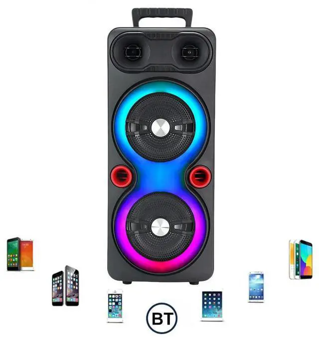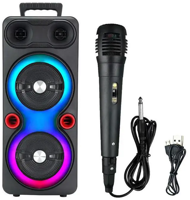 Outdoor Portable Speaker BT 5.0 6.5 Inch Stereo Subwoofer RGB Party Sound Box with Mic FM Radio Heavy Bass DJ System
