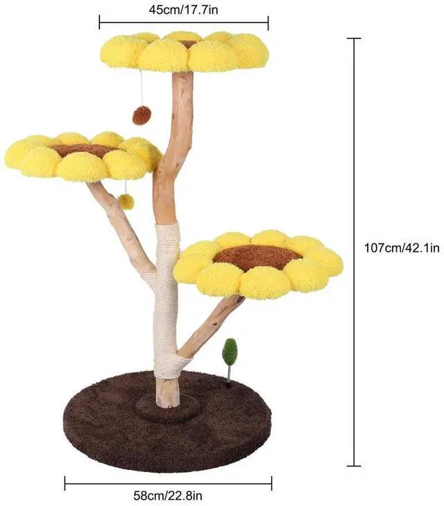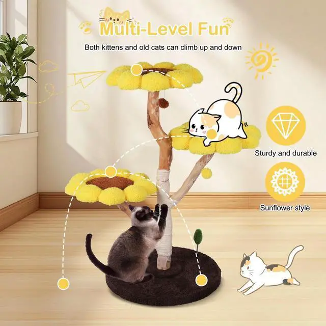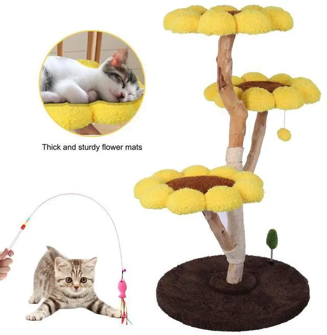 Sunflower Cat Tree with Scratching Post Cat Climbing Frame Wear Resist Cute Sunflower Cat Bed for Pet Playground Small Nest