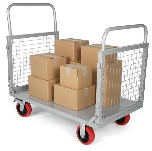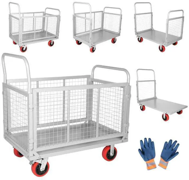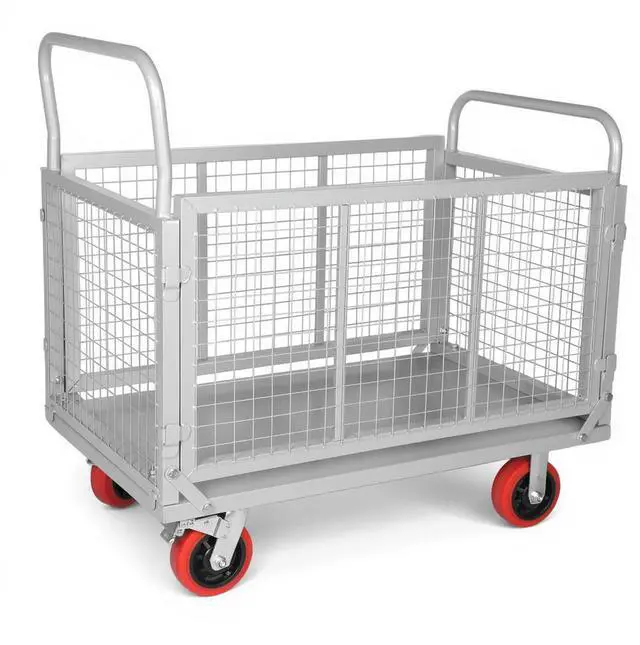 Steel Panel Truck with Cage, Heavy Duty Drywall Cart Lumber Cart Platform Truck Flat Cart, 1800lbs, 6" Swivel Brake Casters