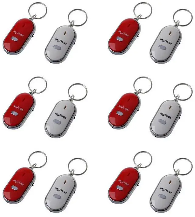 12Pcs Whistle Lost Key Finder Flashing Beeping Locator Remote Keychain LED Ring