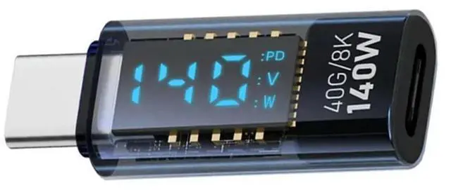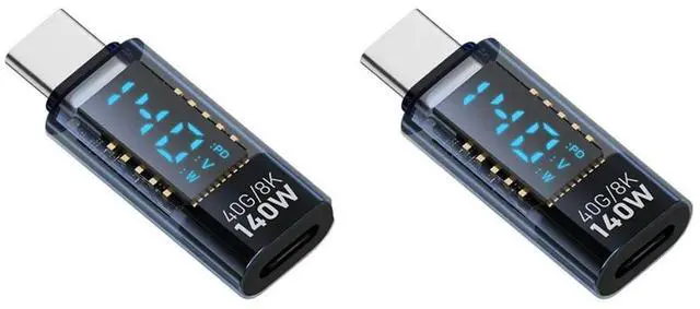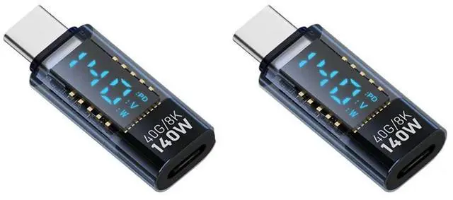 2X USB C Adapter LED Wattage Display 140W 40Gbps 8K USB C Extension PD 3.1 Type C Connector Type C Blue