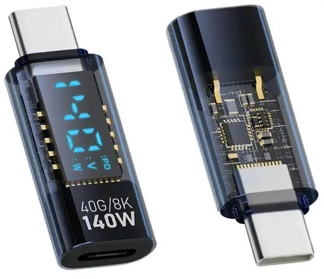 2X USB C Adapter LED Wattage Display 140W 40Gbps 8K USB C Extension PD3.1 Type C Connector Type C Blue