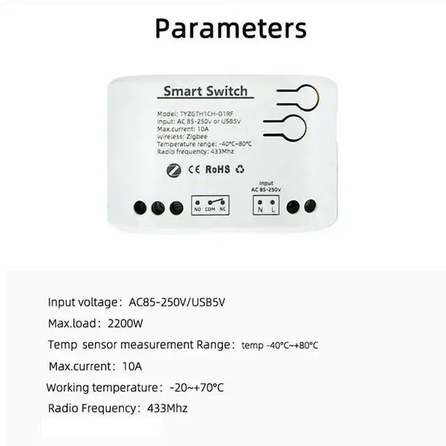 3X Tuya Zigbee Switch With Temperature Sensor Passive Dry Contact Zigbee Relay Work With Home Assistant AC 85-250V