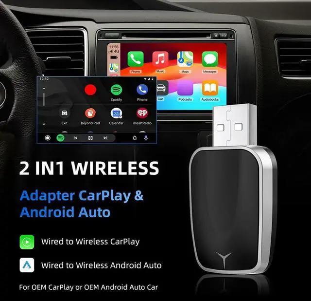 Wireless Adapter 2 In 1 Dongle Wired To Wireless Carplay & Android Auto Wired Carplay Auto Car USB Plug And Play