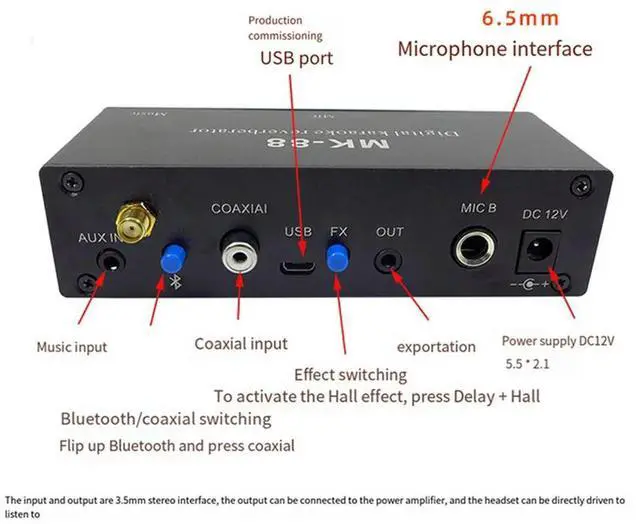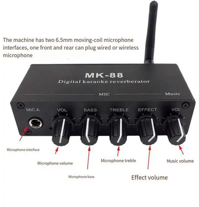 2X MK-88 6.5M m Microphone Reverb Effect Bluetooth Coaxial Decoder Stereo Preamplifier Audio Amplifier Mixing Board