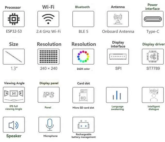 ESP32-S3 Development Board 1.3I nch LCD Desktop Display Weather Station For Deepseek Xiaozhi AI Voice Chat Robot