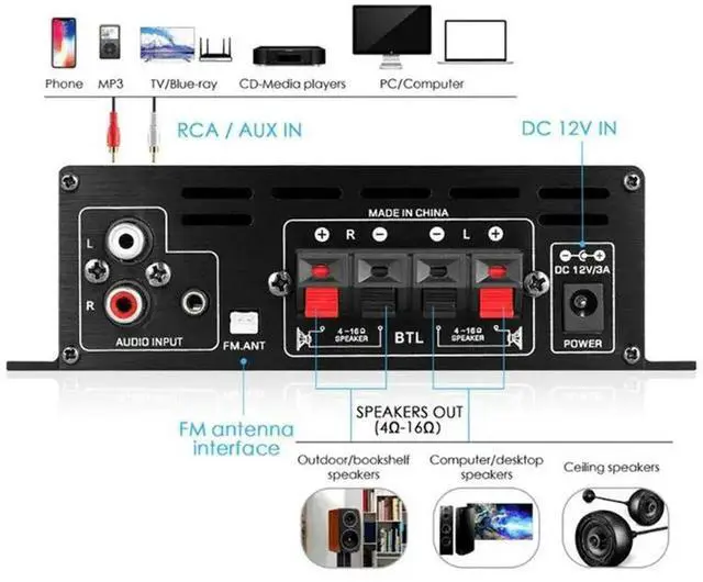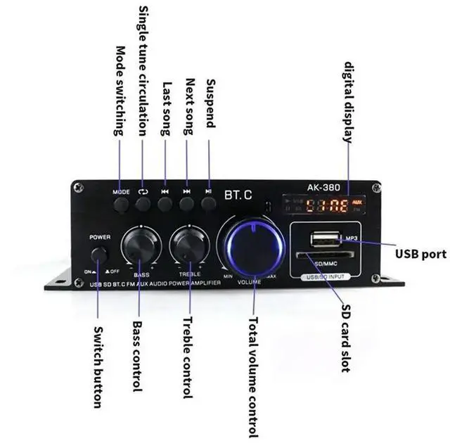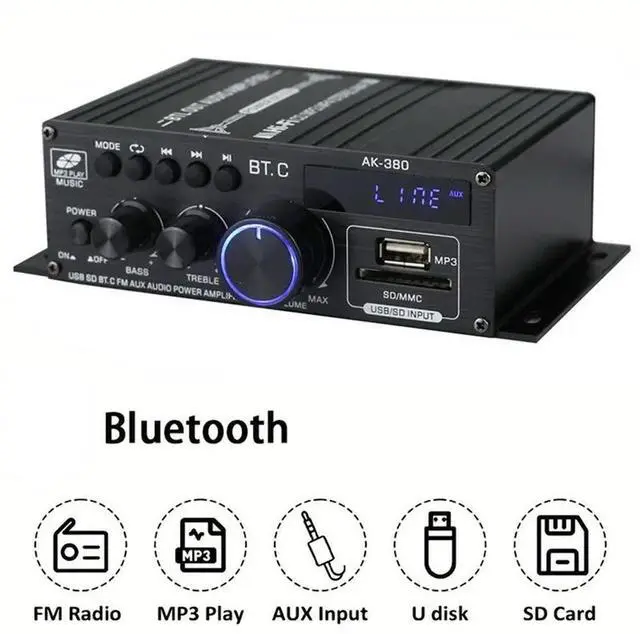 AK380 Sound Amplifier Audio 2 Channel HIFI Bluetooth Karaoke Home Theater For Car