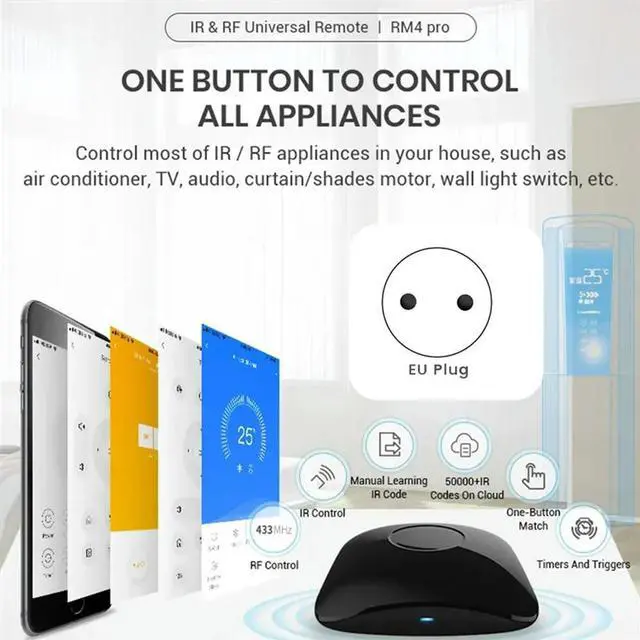RM4 Pro Universal Remote Control RF IR Controller home Automation Word For Alexa & Google Home EU Plug