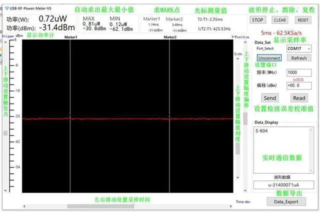 V 7.0 RF Power Meter 10Ghz Power Detector 30Dbm Max Input, N-Type Connector, USB-C Port