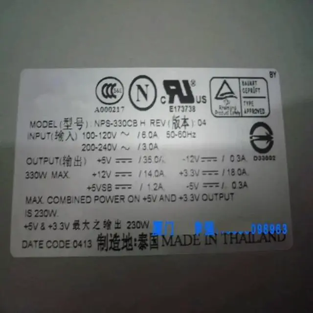 Power Supply PowerEdge 1300 1400 2400 330W For 1H070 01H070 NPS-330CB H