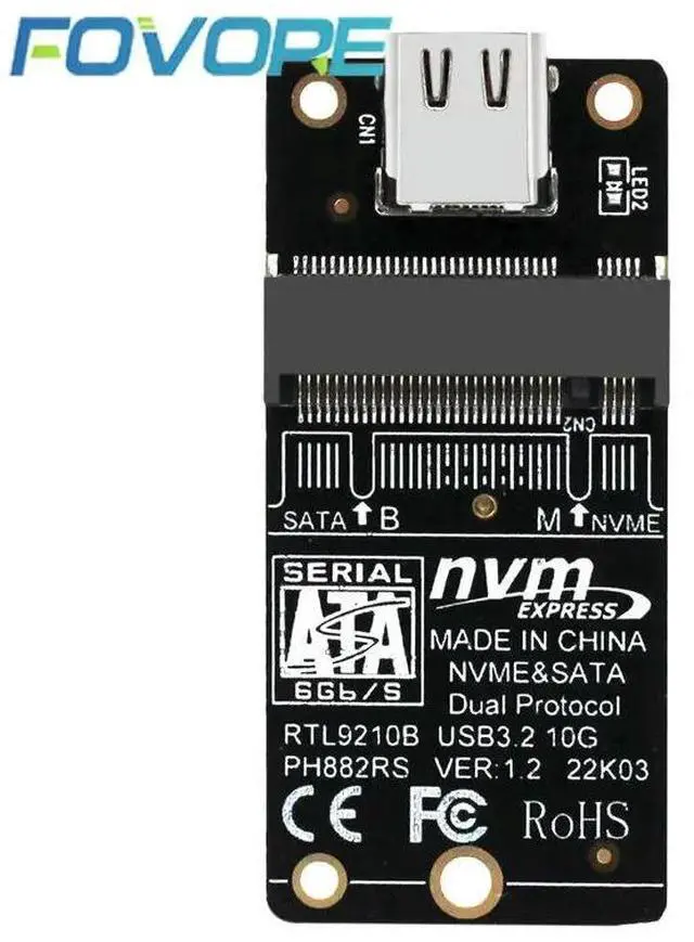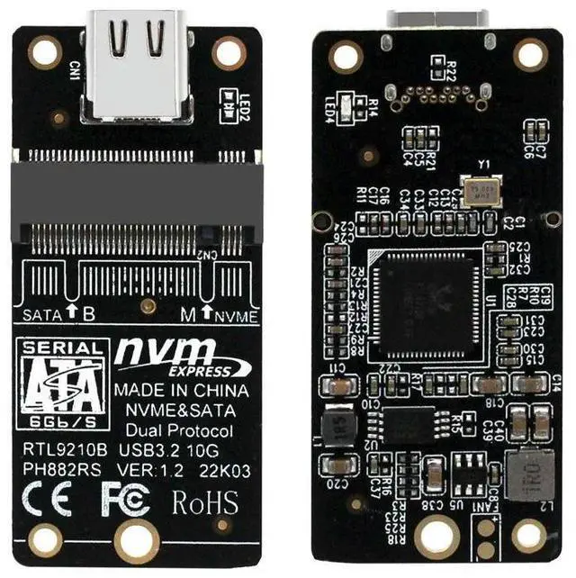 High-Speed M2 To USB 3.1 Type C Adapter with Dual Protocol RTL9210B for PCIE NVME and SATA SSDs