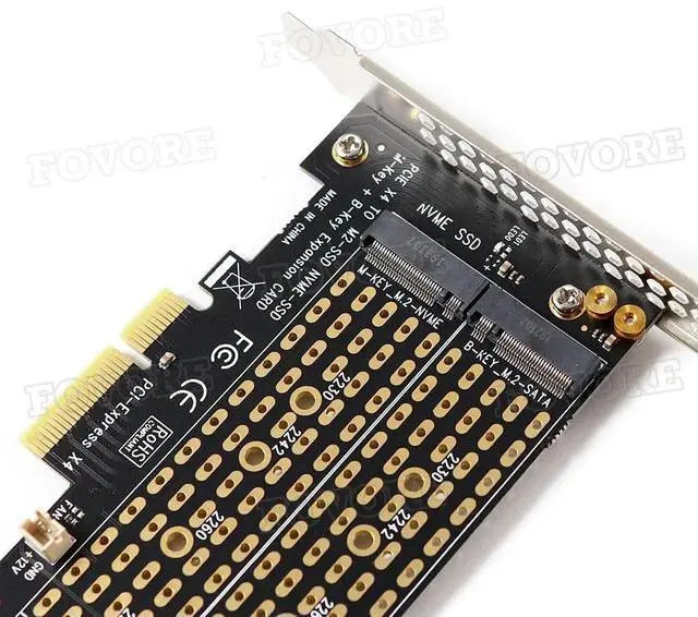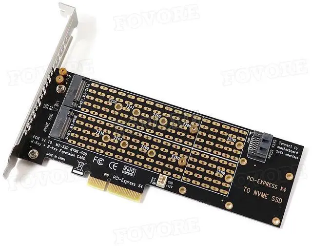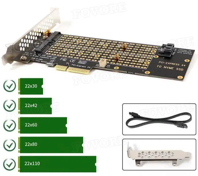 M. 2 NVMe PCIe Adapter Key M+B with Fan & SATA Cable for 2230/2242/2260/2280/22110 SSD PC Build