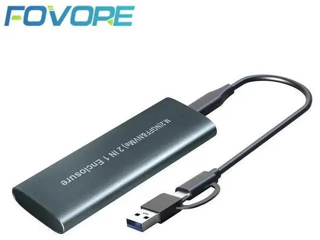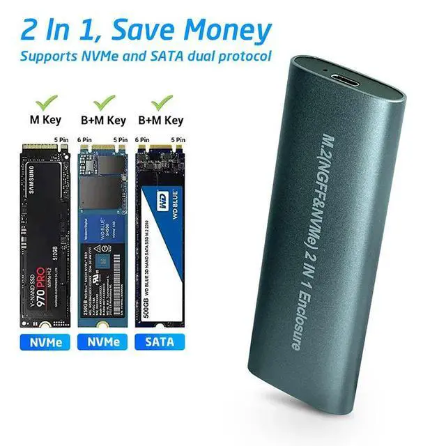 Dual Protocol M. 2 SSD Enclosure - USB Type C 3.1 SATA NVME Adapter for PCIE NGFF M2 SSD
