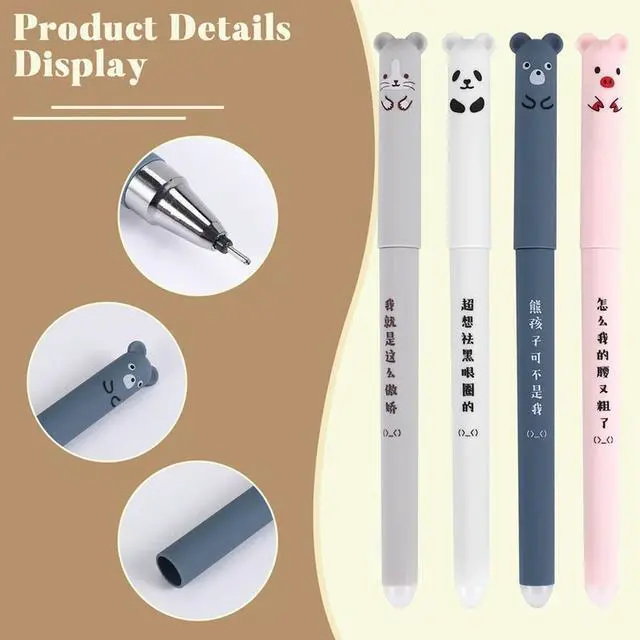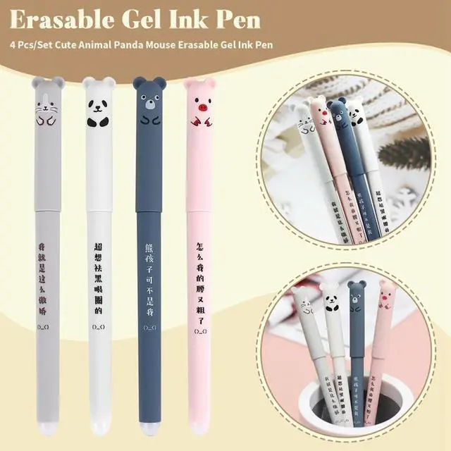 4 Pcs/Set Cute Animal Panda Mouse Erasable Gel Ink Pen 0.35Mm Gel Pen School Office Supply Gift Students Stationery