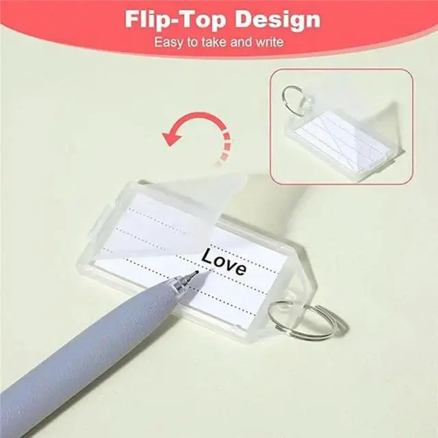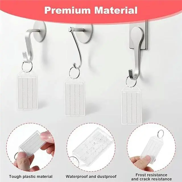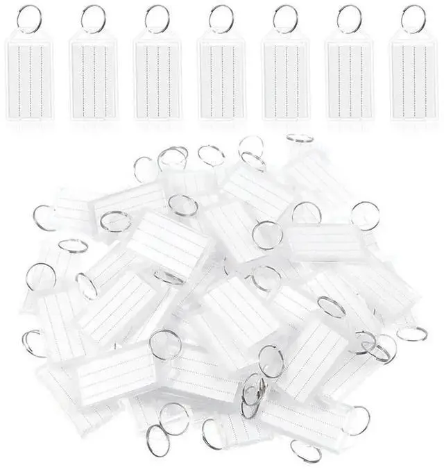 Plastic Key Tags 100Pcs White With els, Key Fobs Featuring Split Ring And Flap el Window For Keys, Pets, Luggage