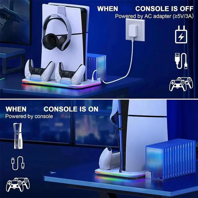 For PS5 Slim PRO Game Console Optical Drive Version Multi-Function Cooling Base Controller And Digital Version