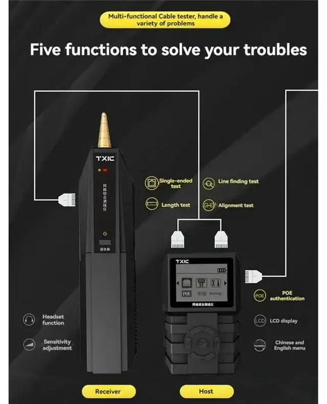 Network Cable Tester Cable Length Tester Ethernet Cable Finder RJ45 Cable Tracker POE Checker For Network Cable