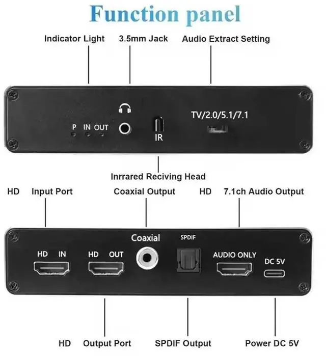 Audio Extractor 8K 60HZ -Compatible Converter With 7.1CH / 5.1 / 2.0 Coaxial Optical Toslink AUX Support HDCP 2.3 EU Plug