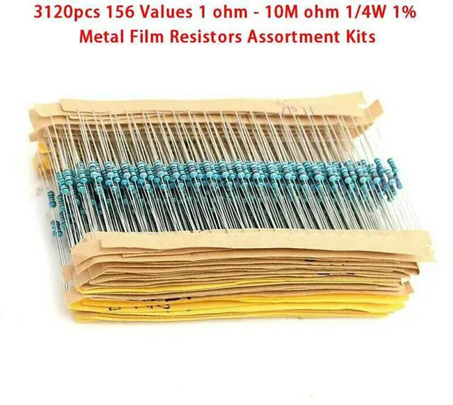 3120pcs 156 Values 1 Ohm - 10M Ohm 1/4W 1% l Film Resistors Assortment Kits For Electrical Equipment Tool Accessory