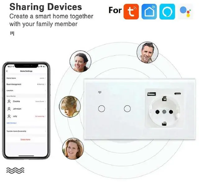 Touch Switch with Integrated USB Power EU Socket Design Voice and Timer Function for Home Energy Efficiency