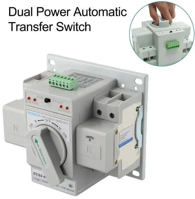 Single Phase Dual Power Automatic Transfer Switch 2P 63A Switchgear Featuring Copper Wire Terminals for Enhanced Conductivity