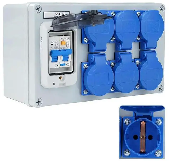 IP54 Wall Distributor 6-Pin Construction Power Distributor With 1P+N FI Switch For Test Measurement Tool Accessory