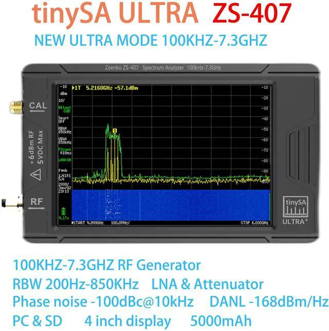 ZS-407 Hand held tiny Spectrum analyzer tinySA ULTRA PLUS 4" display 5000mAh 100K- 7.3GH z