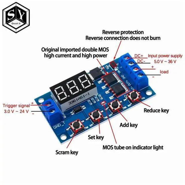 Trigger Cycle Timer Delay Switch 12 24V Circuit Board Dual MOS Tube Control Module