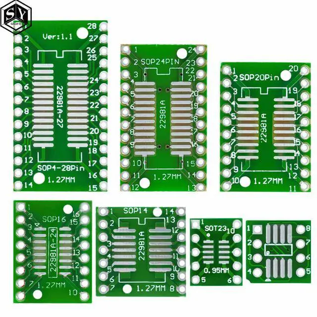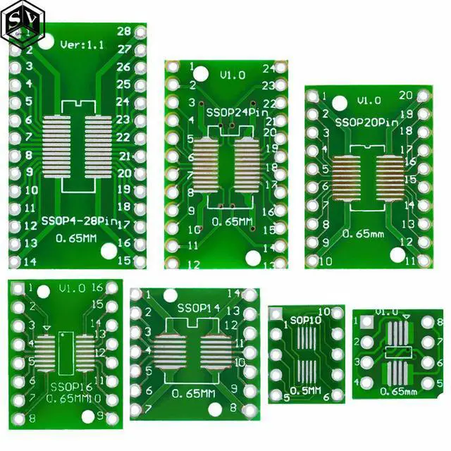 7PCS=7value*1PCS PCB Board Kit SMD Turn To DIP SOP MSOP SSOP TSSOP SOT23 8 10 14 16 20 24 28 SMT To DIP